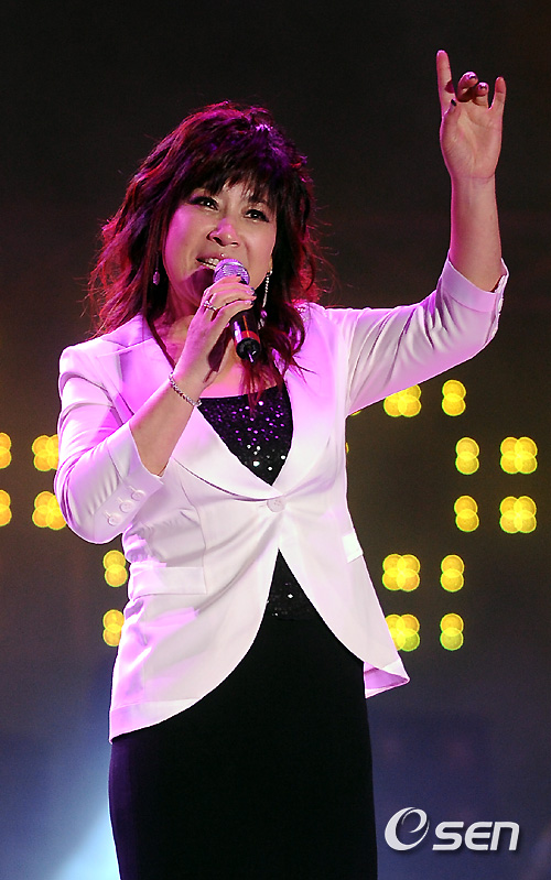 노사연이 13일 오후 서울 여의도 문화의 마당에서 열린 '키코(KIKO) 바로알기 시민참여 문화제'에서 화려한 무대를 보이고 있다.