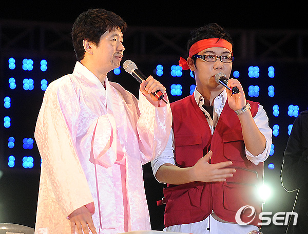 개그맨 박성호와 황현희가 13일 오후 서울 여의도 문화의 마당에서 열린 '키코(KIKO) 바로알기 시민참여 문화제'에서 개그콘서트 '남.보.원' 무대를 보이고 있다