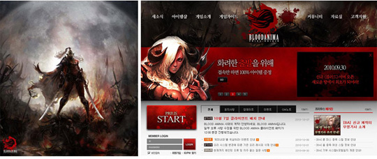 감성적이고 따스한 분위기를 풍겼던 '프리우스온라인'의 기억은 전투콘텐츠를 강조한 '블러드이나마'에서는 찾기 힘들다. 강렬한 색체로 꾸며진 홈페이지 디자인에 다들 놀라는 분위기.