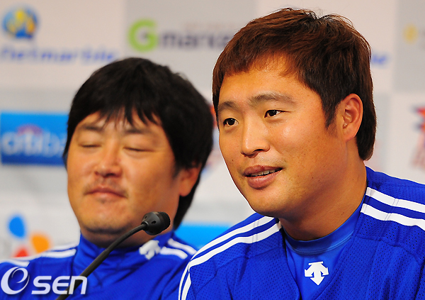 14일 오후 인천 문학월드컵컨벤션센터 미추홀에서 열린 2010 프로야구 한국시리즈 미디어데이에서 삼성 박한이가 질문에 답을 하고 있다.