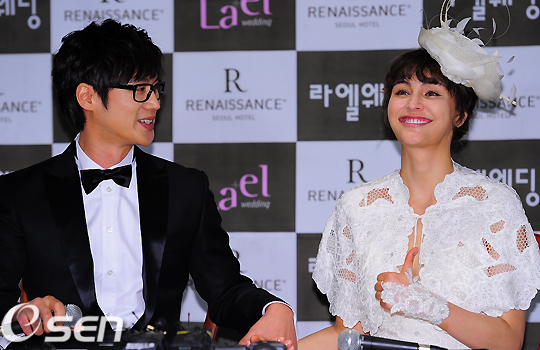 탤런트 이유진(33)의 결혼식 전 기자회견이 14일 오후 서울 역삼동 르네상스 호텔 토파즈홀에서 열렸다.