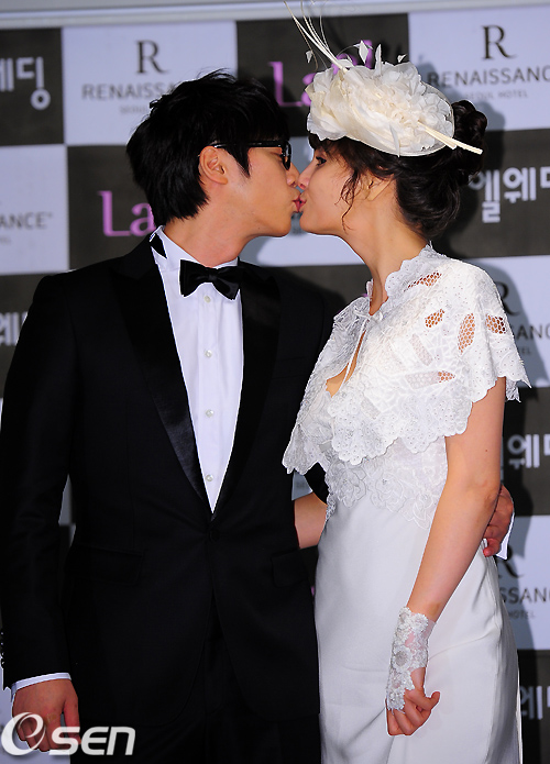 이유진과 예비신랑 김완주씨가 포토타임을 갖고 있다./rumi@osen.co.kr