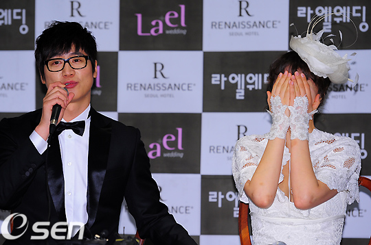탤런트 이유진(33)의 결혼식 전 기자회견이 14일 오후 서울 역삼동 르네상스 호텔 토파즈홀에서 열렸다.