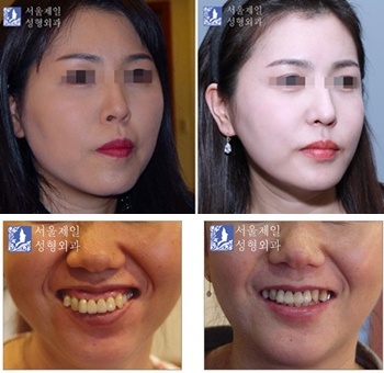 필요한 경우, 돌출입수술과 동시에 사각턱, 광대뼈수술(사진 참조)을 통해 얼굴 전체의 조화를 이루면 돌출입수술이 더욱 빛이 나게 된다.