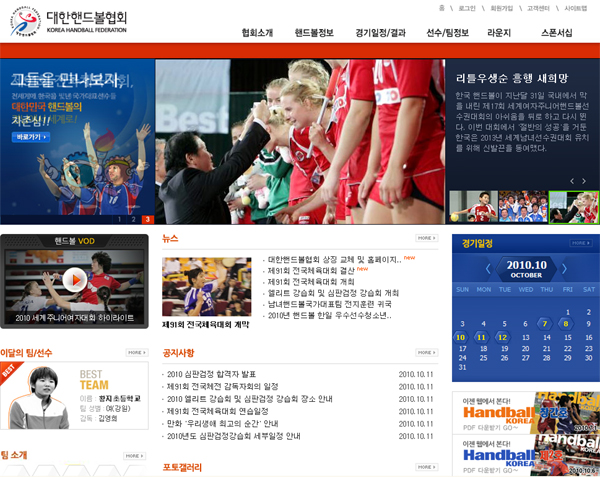 핸드볼협회는 협회 홈페이지(www.handballkorea.com)를 지난 14일 새 단장해 선보였다.
