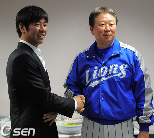 경기 전 도쿄 야쿠르트 스왈로스 임창용이 삼성 선동렬 감독과 포즈를 취하고 있다 ./rumi@osen.co.kr