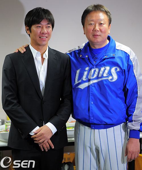 경기 전 도쿄 야쿠르트 스왈로스 임창용이 삼성 선동렬 감독과 포즈를 취하고 있다 ./rumi@osen.co.kr