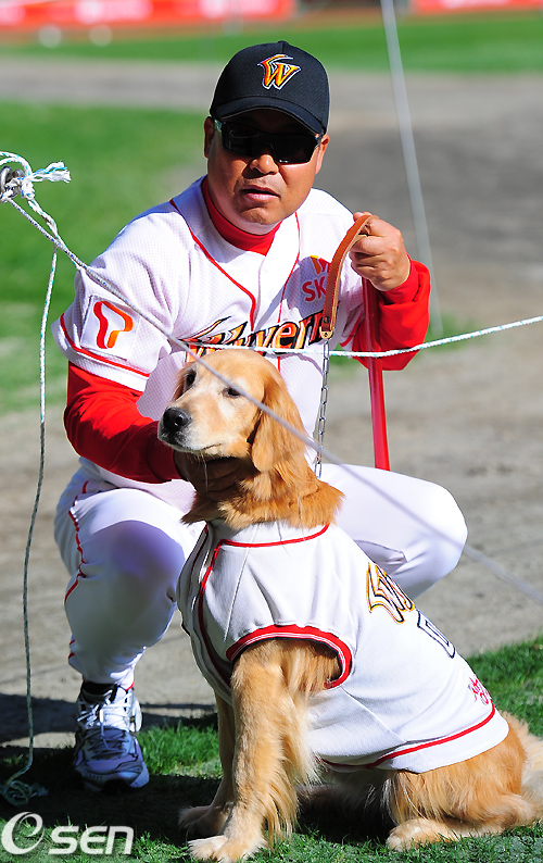 SK 이만수 코치가 미르를 조련하고 있다./rumi@osen.co.kr
