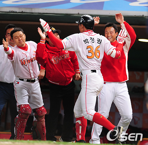 박정권은 흔들린 이우선의 5구(슬라이더)를 그대로 걷어올려 우월 투런홈런을 날렸다. 2사후에는 최정이 좌익선상에 떨어지는 2루타와 조동환의 볼넷에 이어 김재현이 우익수 앞으로 굴러가는 적시타를 날려 9-4까지 점수차를 벌렸다. 초반 주춤하던 SK 타선은 불타올랐고 사실상 승부는 결정났다. 삼성은 박석민이 8회초 중월 솔로아치를 그렸으나 넘어간 승기를 되돌리기엔 역부족이었다.