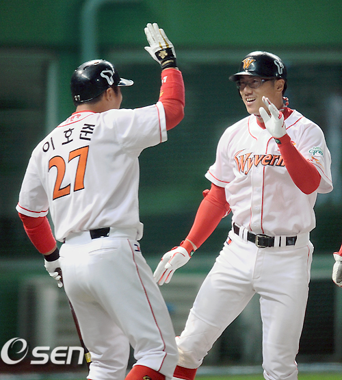 이호준과 박정권은 15일 인천 문학구장에서 벌어진 삼성 라이온즈와의 한국시리즈 1차전서 각각 1회말 중견수 방면 1타점 바가지 안타와 6회말 우중월 쐐기 투런을 작렬했다. 팀은 9-5로 승리했다.