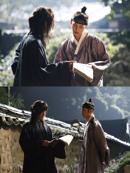 KBS 2TV 월화드라마 '성균관 스캔들'에서 통제 불능 반궁의 미친 말 걸오 문재신 역의 유아인과 극중 그의 유일한 10년 지기 절친 여림 구용하 역의 송중기의 촬영 현장 스틸이 공개됐다.
