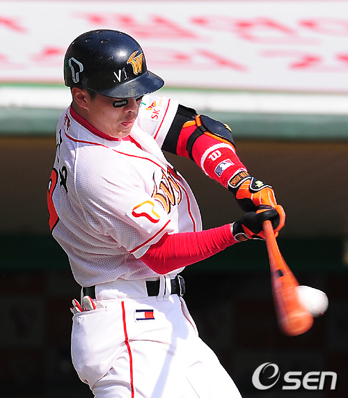 1회말 SK 정근우의 배트에 공이 정확하게 맞고 있다. 내야땅볼로 아웃. /spjj@osen.co.kr