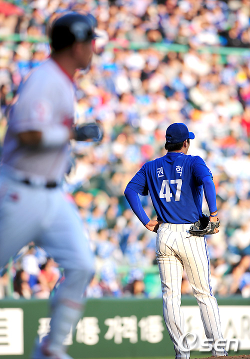 박경완에 홈런 허용 권혁,'아웃카운트 하나는 잡았는데!'