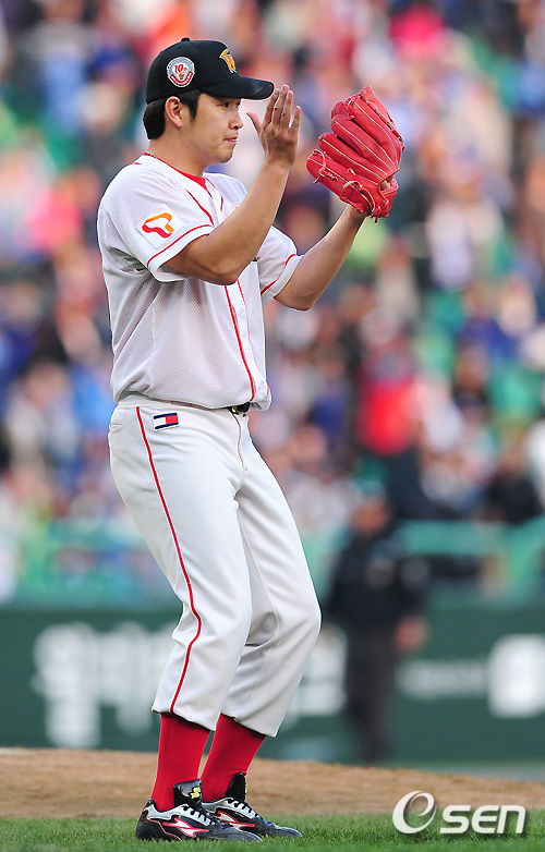 SK 송은범이 세이브를 거두고 박수를 치고 있다. /spjj@osen.co.kr