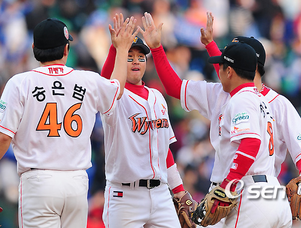 SK 선수들이 마운드에 모여 승리의 기쁨을 나누고 있다. /spjj@osen.co.kr
