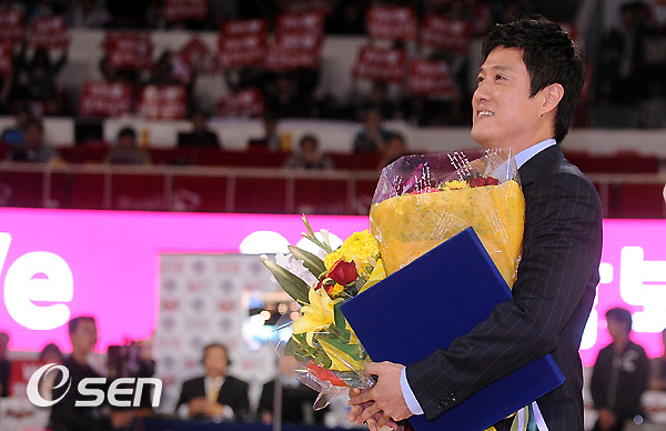 SK에서 영구 결번은 이번이 두 번째. 지난 2008년 은퇴한 전희철(37) 운영팀장에 이어 문경은 코치가 한국을 대표하는 3점슈터로 한국 농구 발전에 기여한 공로를 인정하고 축하하는 자리.