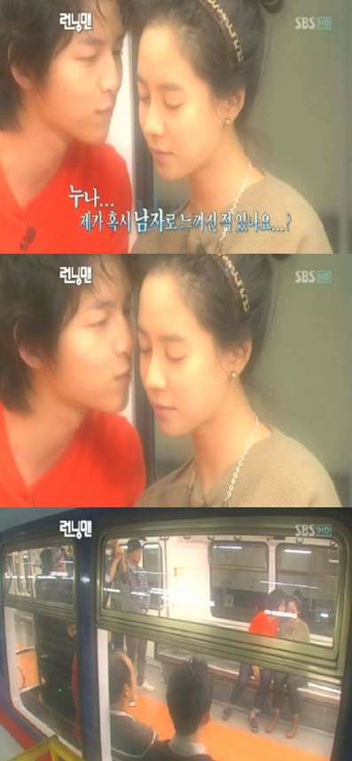 SBS 예능프로그램 '일요일이 좋다-런닝맨'이 배우 송중기와 송지효의 볼키스 예고로 흥미를 돋궜다.
