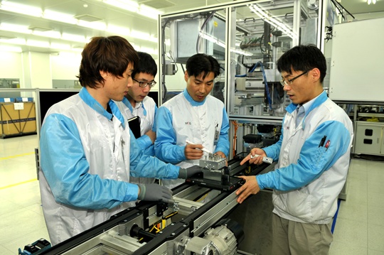 이곳에서 연구원들은 생산라인에서 현장 직원들과 함께 직접 부품을 생산하고 품질을 점검하며 구슬땀을 흘리고 있는 것. 생산과 품질라인에서 직접 부품과 씨름을 하고 있는 중이다.