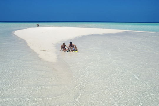 청아한 에메랄드빛 바다, 티 없이 맑은 백사장, 그 가운데 면사포 사이로 드러난 신부의 고운 잇속처럼 피어난 뽀얀 모래톱. 몰디브 올후벨리 리조트의 해변은 하염없이 매만지고 싶어지는 사랑하는 이의 살결을 닮았다. 그곳에서 입을 열면 소리가 되어 나오는 것은 탄성 아니면 사랑의 맹세.