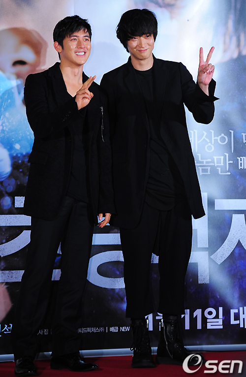 무대 위에서 고수와 강동원이 포토타임을 갖고 있다. /rumi@osen.co.kr