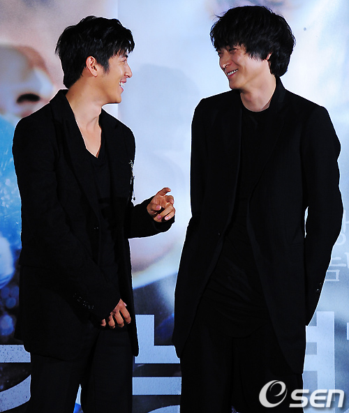 고수와 강동원이 포토타임중 얘기를 나누며 환하게 웃고 있다. /rumi@osen.co.kr