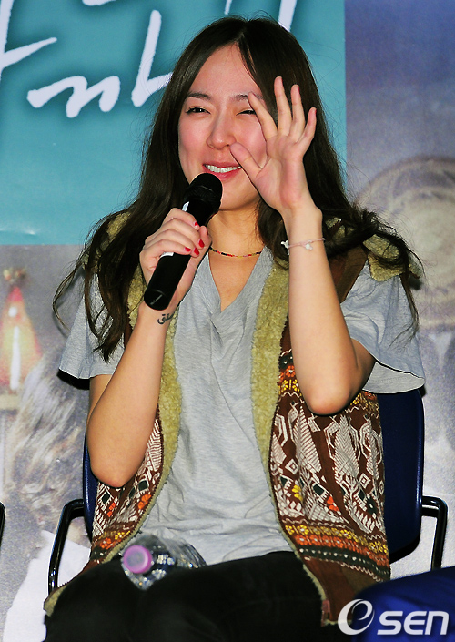 요조가 기자회견중 취재진의 플래쉬에 눈부셔하고 있다./rumi@osen.co.kr