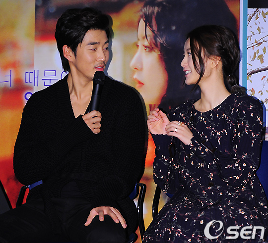 기자회견중 윤계상과 정유미가 얘기를 나누고 있다./rumi@osen.co.kr