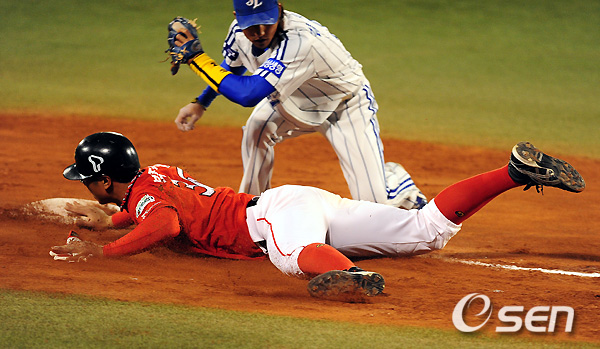 4회초 1사 2,3루 나주환의 내야땅볼때 3루주자 박경완 태그 아웃 후 1루주자 나주환이 협살에 걸리자 3루주자 박정권이 홈을 노리다 3루에 백업 아웃되고 있다. /spjj@osen.co.kr