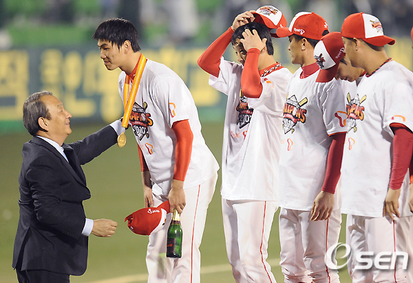 경기 종료후 시상식에서 유영구 총재가 선수들에게 우승메달을 걸어주고 있다./ ajyoung@osen.co.kr