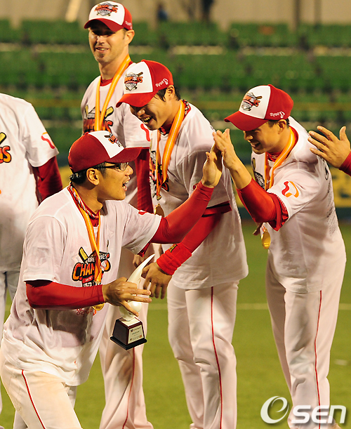 19일 대구구장에서 벌어진 한국시리즈 4차전 경기서 SK는 박정권의 2타점 2루타와 투수들의 효과적인 계투로 삼성을 4-2로 누르고 한국시리즈 우승컵을 들어 올렸다.