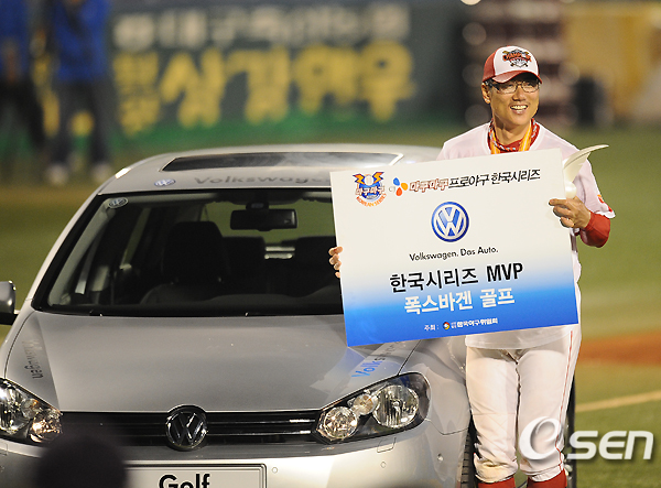 경기 종료후 시상식에서 한국시리즈 MVP를 수상한 박정권이 포즈를 취하고 있다./ ajyoung@osen.co.kr