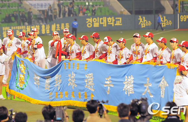 ▲정근우 : 작년 우승 놓친 게 아쉬웠는데 올해 우승해서 기쁘다. 김재현 선배의 은퇴 선물을 안겨줘서 좋다. 감독님께 감사드린다.