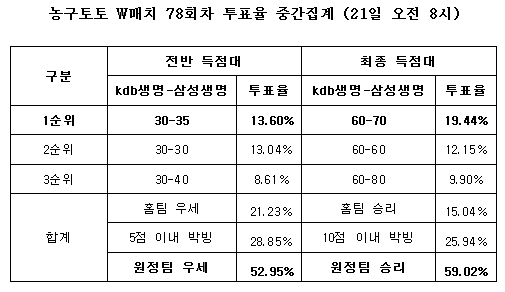 2010-2011 시즌 농구토토 W매치 78회차 투표율 중간집계 결과
