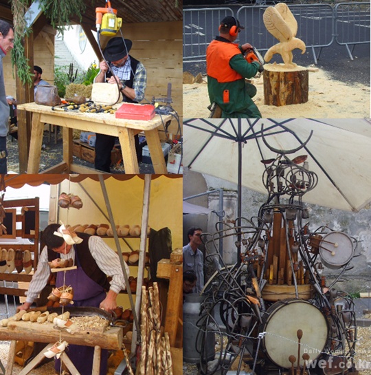 [나무 토막 내기 경연대회와 조각 예술품들]