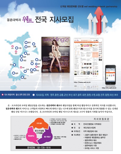 IT를 기반으로 한 솔루션과 SNS를 접목한 다양한 어플리케이션, 그리고 모바일 웹 서비스를 개발하고 있는 웨딩부문 랭키닷컴 전국 점유율 45%인 결혼대백과 웨프(http://www.wef.co.kr )에서 전국 지사 네트워크인 WWN(wef wedding network) 구축을 공식화했다.