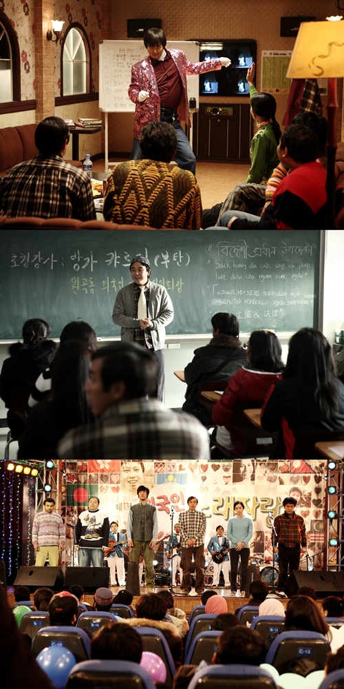 마지막은 바로 영화의 후반부 노래자랑에서 다 함께 ‘카밀라 송’을 부르는 장면. ‘카밀라 송’은 극중 ‘알반장’이 고국에 두고 온 부인 ‘카밀라’를 그리며 부르는 노래로, 코리안 드림을 품고 온 그들이 강제출국 당할 처지에서 함께 화합의 하모니를 연출해 감동을 선사하는 노래다. 사랑하는 사람에게 자신의 마음을 고백하는 노래의 아름다운 가사가 시선을 사로잡으면서도, 이제껏 들어보지 못한 아름다운 ‘카밀라 송’의 멜로디는 영화의 클라이막스에서 관객들에게 뜨거운 감동을 느끼게 한다.