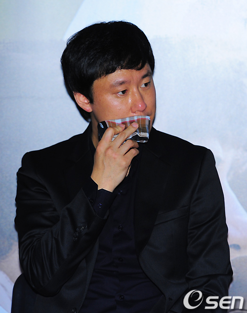 기자회견중 김영필이 땀을 닦고 있다./rumi@osen.co.kr