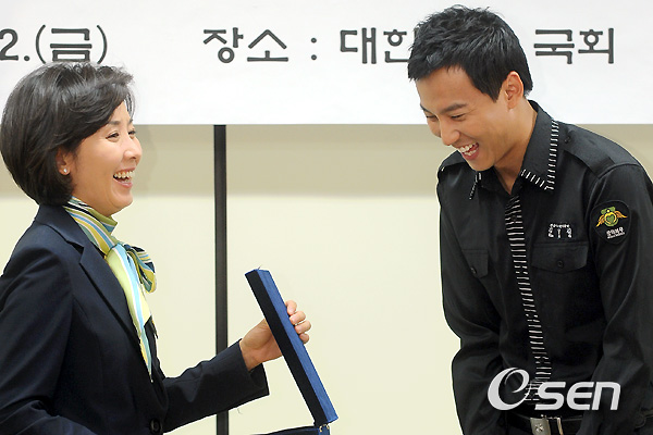김남길이 나경원 의원으로부터 공로패를 받고 있다. /soul1014@osen.co.kr