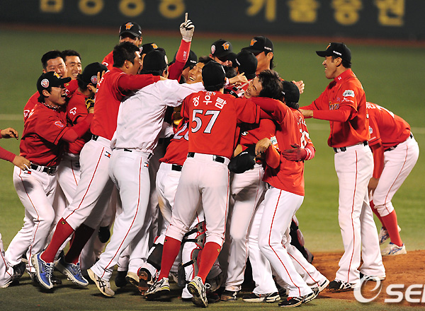 2007년과 2008년에 이어 2년만에 맛 본 왕좌다. SK 와이번스가 세 번째 통합 우승을 차지했다. 4년 연속 한국시리즈에서 세 차례나 우승을 거머쥔 것이다. 더구나 세 번째는 한 번의 패배도 허용하지 않았다.