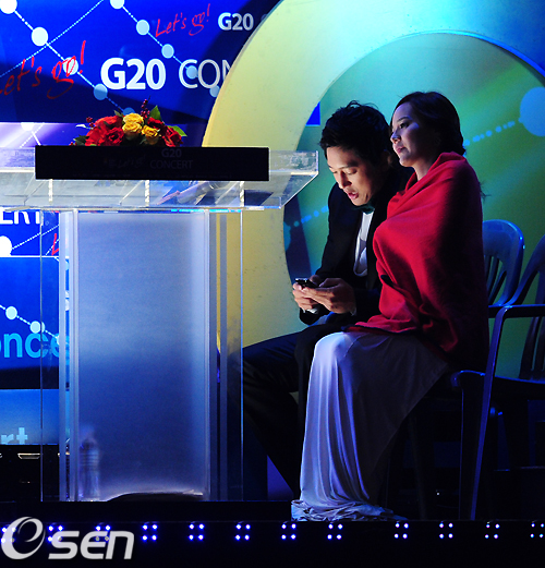 23일 오후 서울 잠실주경기장에서 열린 '2010 아시아송페스티벌, Let's go! G20 콘서트'에서 사회를 맡은 유진이 이승철의 무대를 바라보고 있다.