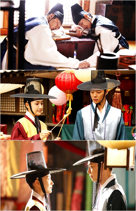 오늘 방송에 앞서 공개된 사진 속 선준과 윤희 두 사람은 청재 중이방에서 나란히 서탁을 마주하고 책을 보다 손을 잡은 채 잠이 들고, 운종가 거리에서 군것질을 하는 등 데이트를 즐기는 연인포스 가득한 모습이다. 또한 서로를 향한 사랑스럽고 따뜻한 눈빛까지 한 눈에 봐도 달라진 물-랑커플의 달달한 러브라인을 예고하고 있는 것.