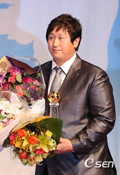 '타격 7관왕' 이대호가 25일 오후 2시 서울 그랜드 인터컨티넨탈 호텔에서 열린 2010CJ마구마구 프로야구 정규시즌 최우수선수(MVP)와 신인상 시상식에서 MVP로 선정됐다. 59표를 수상한 이대호는 SK 와이번스를 우승으로 이끈 '다승왕' 김광현(22, SK), 23경기 연속 퀄리트 스타트를 기록한 '괴물투수' 류현진(23, 한화)를 물리치고 올 시즌 MVP로 등극했다. 류현진은 30표, 김광현은 3표에 그쳤다.