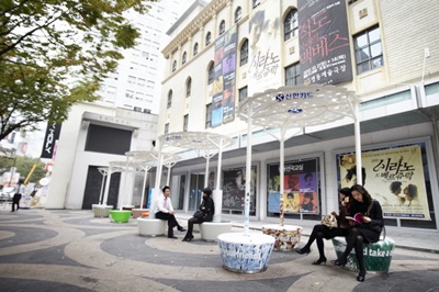 이 아트벤치는 ‘아트 위에 쉬다’라는 콘셉트로 만들어져, 시민들이 명동예술극장을 보다 친근히 느낄 수 있도록 해준다.