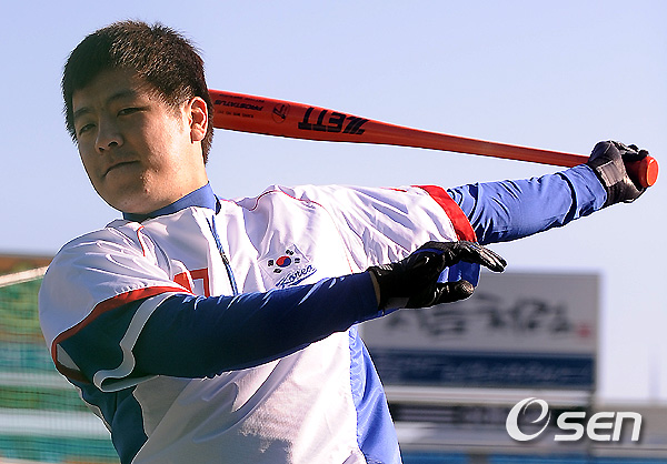 27일 광저우 아시안게임 대표팀의 두 번째 합동훈련이 펼쳐진 부산 사직구장. 훈련 중반 3루 자리에는 조동찬, 최정이 아닌 포수 강민호(25. 롯데 자이언츠)가 수비에 나서는 이색적인 모습을 연출했다.