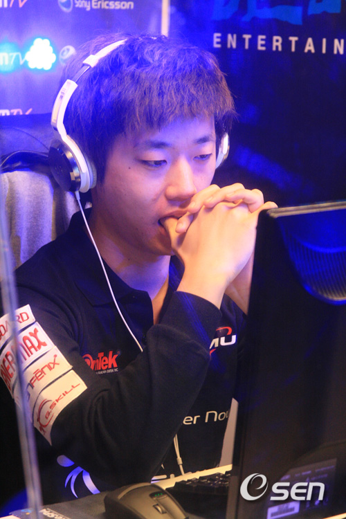 '디펜딩 챔피언' 김원기는 27일 저녁 서울 신정동 곰TV스튜디오에서 열린 'GSL시즌2' 32강 이정훈과 경기서 0-2로 완패를 당했다.