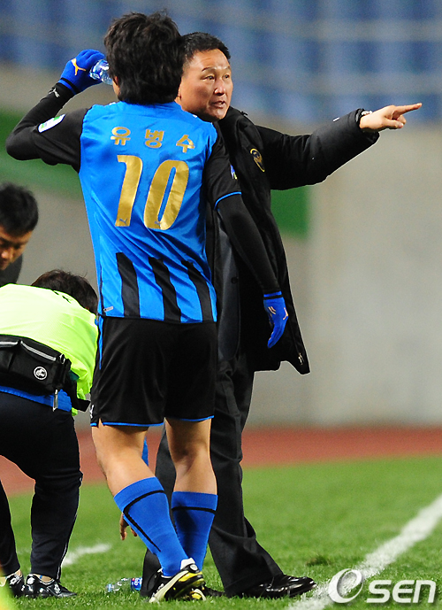 전반 인천 유병수가 선제골을 성공시키고 허정무 감독과 이야기를 나누고 있다. /jpnews@osen.co.kr