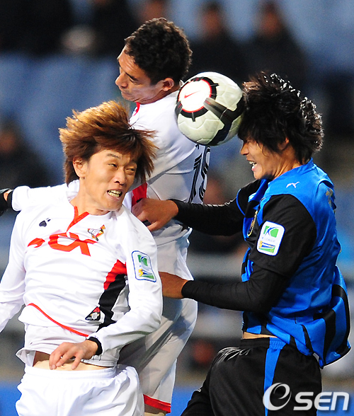 후반 인천 김영빈이 경남 루시오 이지남에 앞서 공중볼을 따내고 있다. /jpnews@osen.co.kr