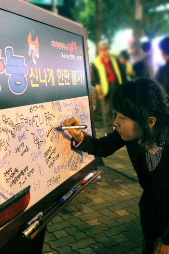 그 중 하나로 비타민하우스는 대학수학능력시험을 30여일 앞두고 서울 시내 학원가를 중심으로 고3 수험생을 응원하는 특별한 길거리 이벤트를 진행했다. 수능을 앞둔 고3 수험생들을 위한 응원 메시지를 남긴 모든 시민을 대상으로 비타민하우스의 비타민C 제품과 박지성 비타민워터를 선물로 증정한 것이다.