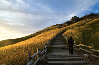 억새여행 1번지다. 민둥산은 강원도 정선군 남면 무릉리에 자리잡았다. 높이 1119m의 민둥산은 산 이름처럼 정상에는 나무가 없다. 드넓은 주능선 일대가 참억새밭이다. 정상까지 35분 정도 걸린다. 평탄한 길은 아니지만 아이들도 무리없이 오를 수 있다.