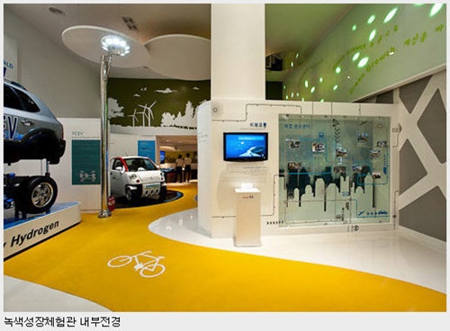먼저 주제 영상관에서 녹색성장의 필요성과 그 이유를 이해한 다음, 그린 홈과 녹색교통 코너에서는 저탄소, 저공해 생활 방법 및 이를 가능케 한 첨단기술들이 소개되며, 친환경 녹색교통수단을 이용해 일터로 나갈 수 있게 꾸며 놓았다.